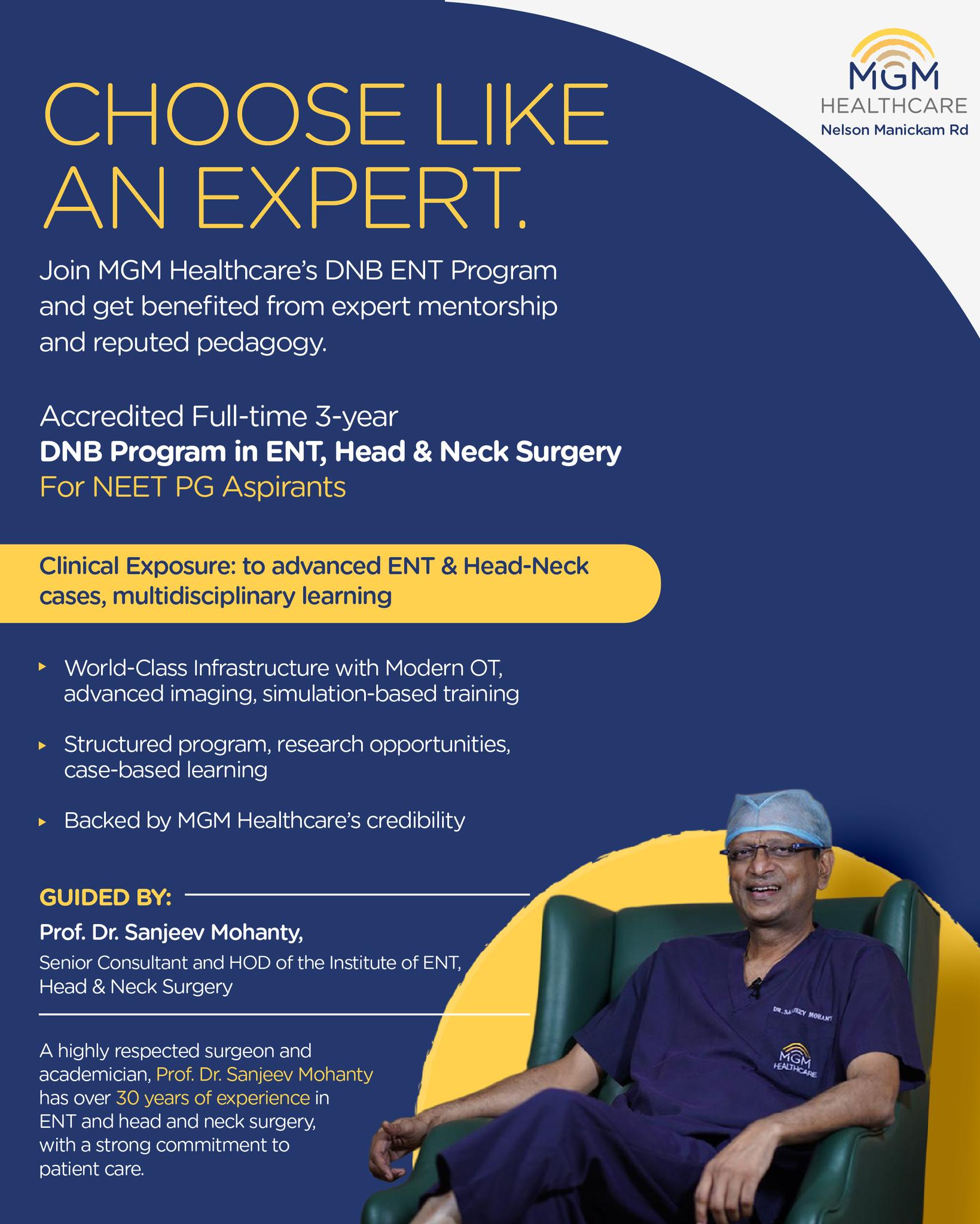 MGM Healthcare Launches One of India’s Most Advanced DNB ENT & Head–Neck Surgery Programs for NEET-PG Aspirants (2025)